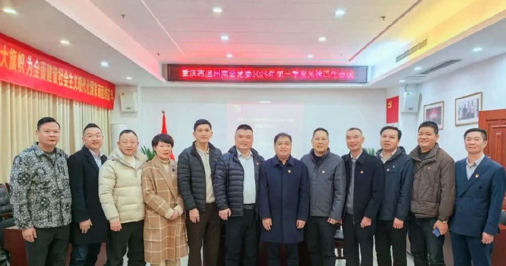 1月10日,新年伊始,重庆市温州商会党委在商会会议室召开党委(扩大)会议,学习习近平主席二〇二六年新年贺词和中央经济工作会议精神,传达落实重庆市工商联(市总商会)六届五次执委会议精神,研究部署商会党委2026年党建工作。党委副书记王孟、党委组织委员吴思方、侨务···