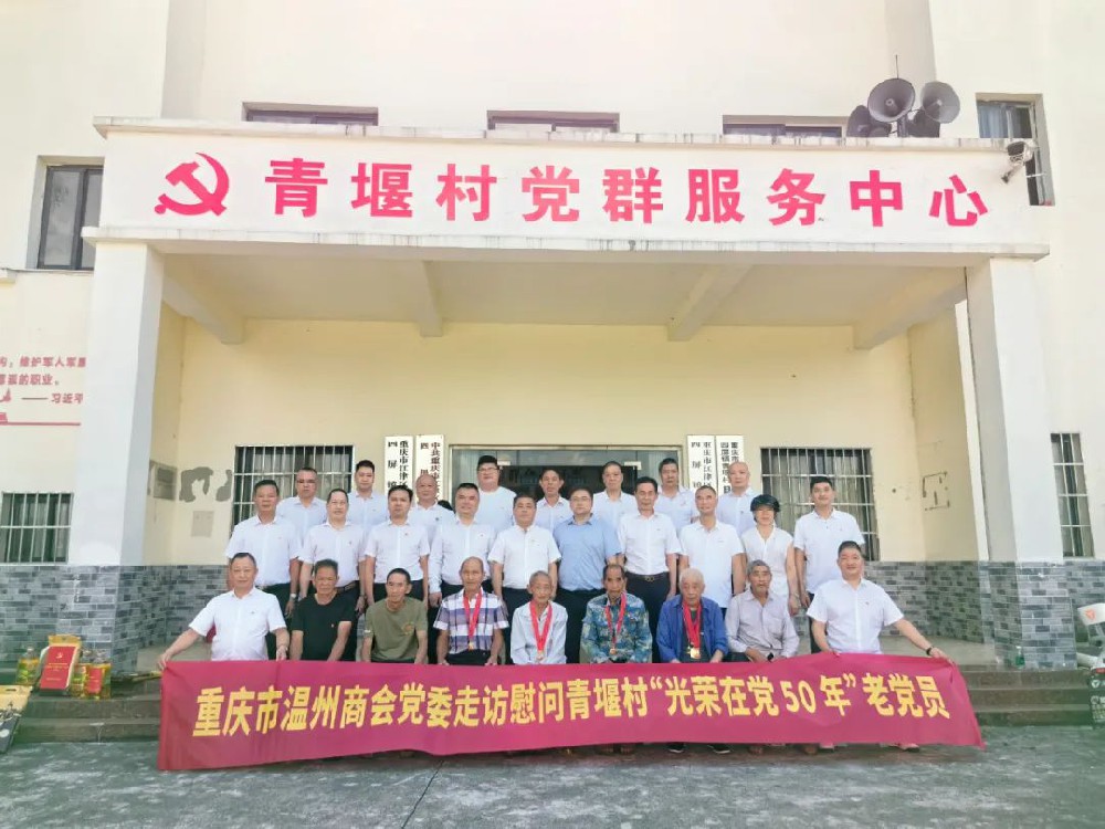 8月13日,骄阳似火,重庆市温州商会党委书记颜贻骥率领党委委员、基层党支部书记及党员代表,头顶烈日,赶赴江津区四屏镇青堰村开展慰问“光荣在党50年”老党员活动。